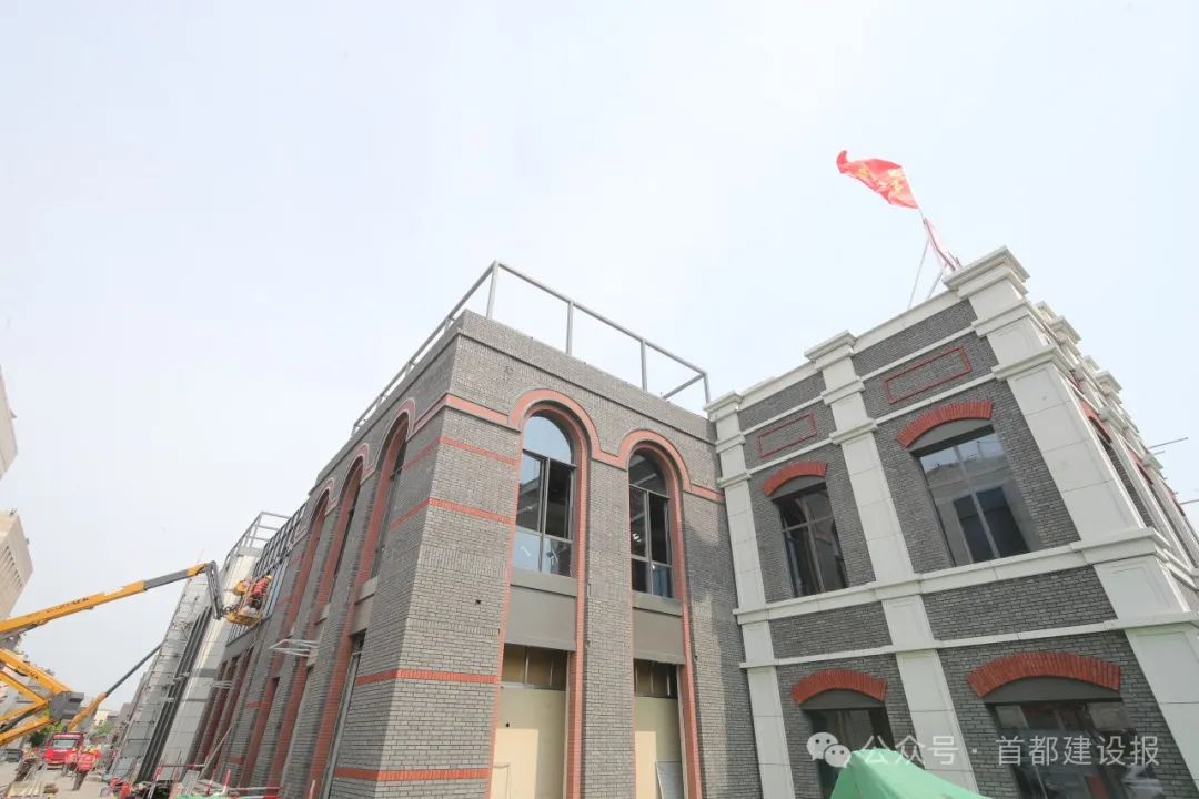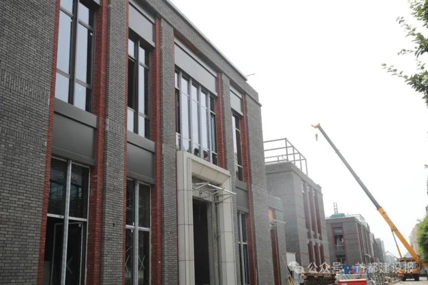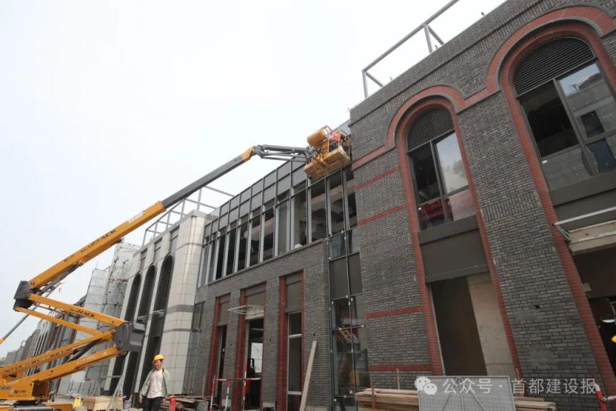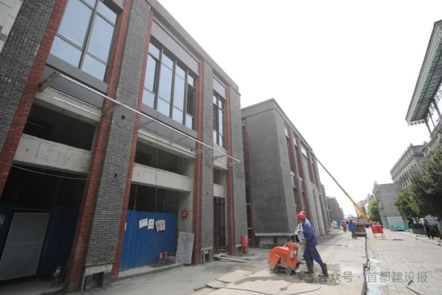 位于前门大栅栏买卖街区西侧的北京坊二期施工现场,青砖外墙搭配红色阴私线条的外立面也曾亮相,几名工东说念主正搬运着阴私材料参加楼内。