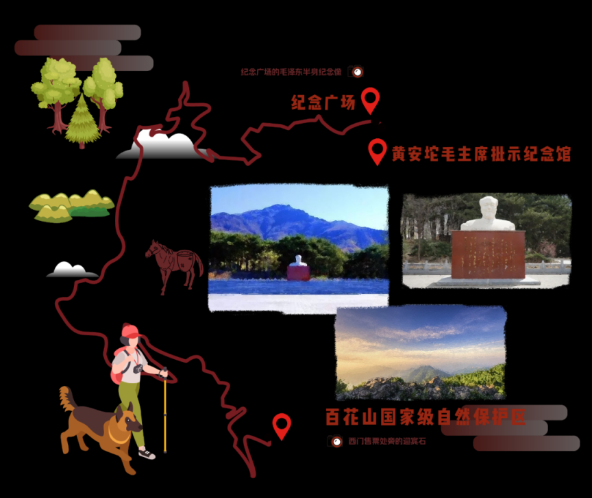 黄安坨毛主席批示顾忌馆→顾忌广场→百花山国度级当然保护区