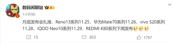 月底新机发布会扎堆!华OV米皆发力 Mate70系列领衔